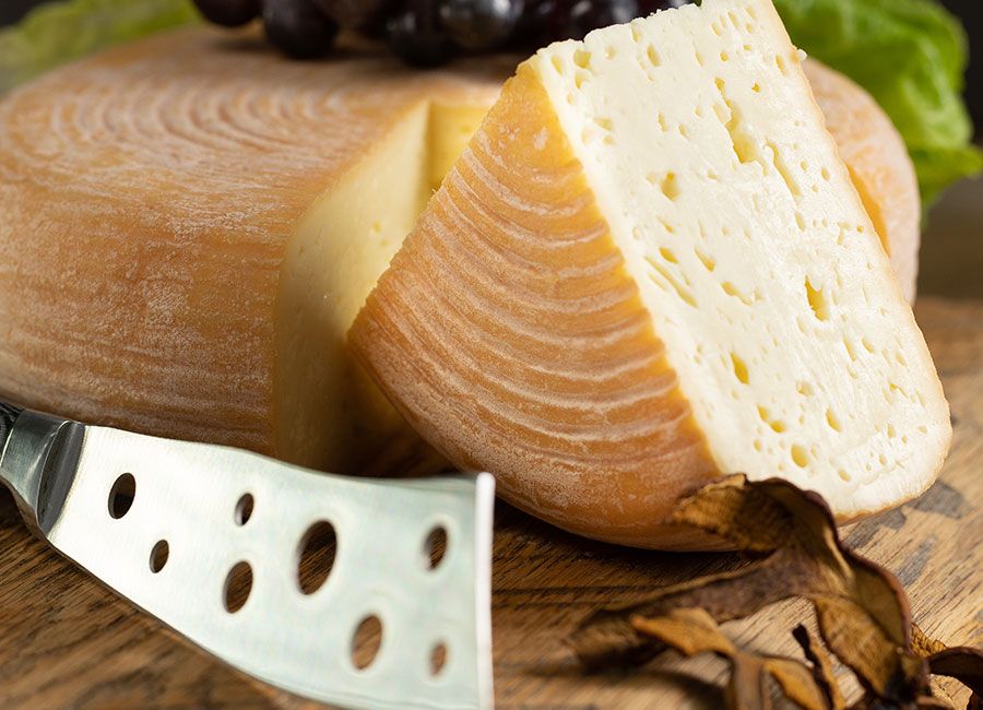De couleur paille, souple, onctueuse, parsemée de petites ouvertures